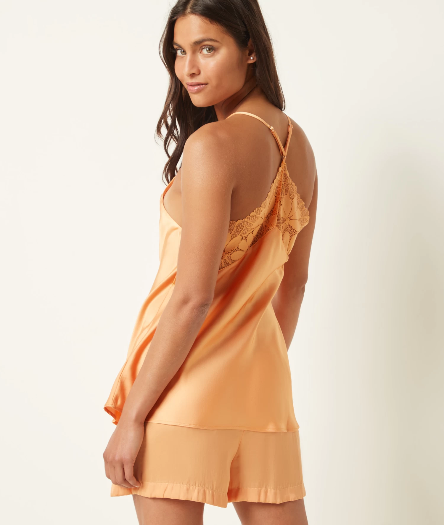 Délicatement satiné, ce caraco chic est muni de bretelles fines, d’un décolleté en V et dévoile un dos en dentelle fleurie. Coordonnez-le au pantalon assorti pour créer votre pyjama parfait.