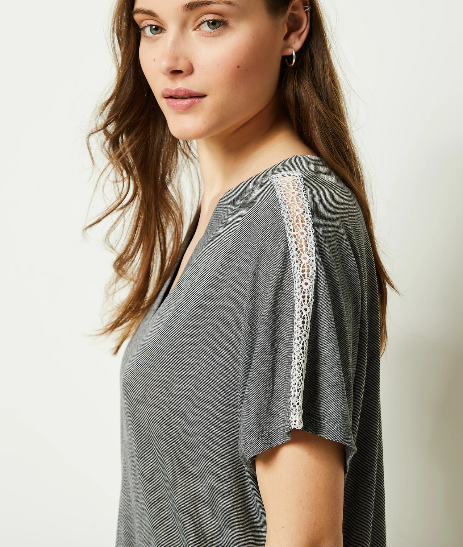 La matière principale de ce produit contient 50% de viscose responsable. La viscose responsable est une matière rĂ©alisĂ©e Ă partir de pulpe de bois issue de forĂŞts gĂ©rĂ©es durablement. Son processus de fabrication nĂ©cessite moins d’eau, d’Ă©nergie et de produits chimiques.