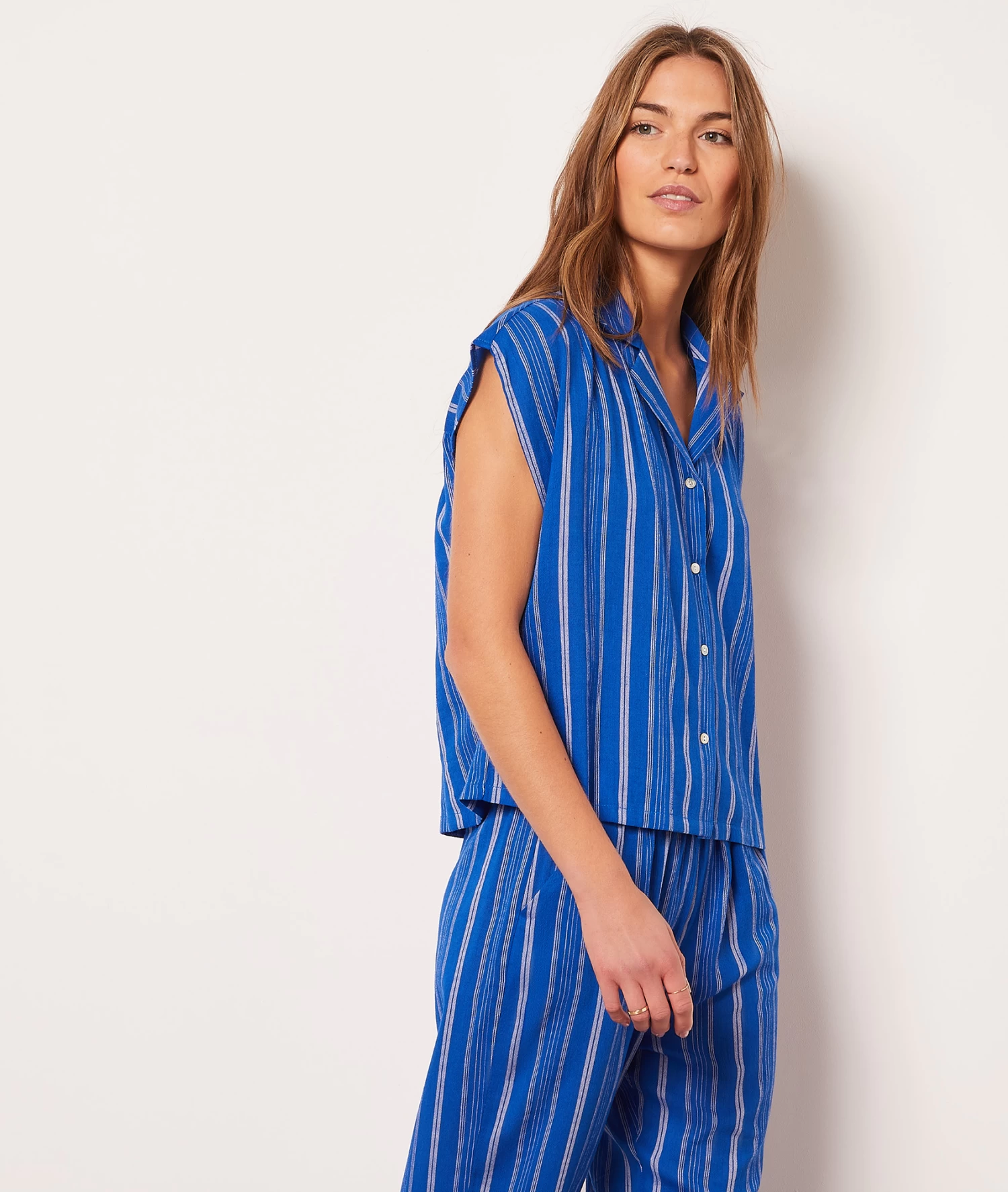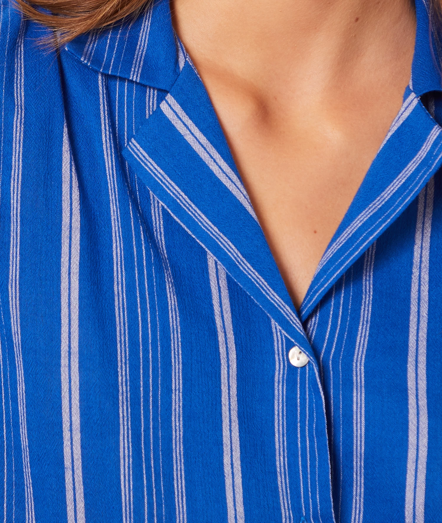 Craquez pour cet intemporel de la garde-robe nightwear. Cette chemise à rayures dévoile une sublime coupe sans manches et une matière douce irrésistible, pour des nuits alliant confort et style.
