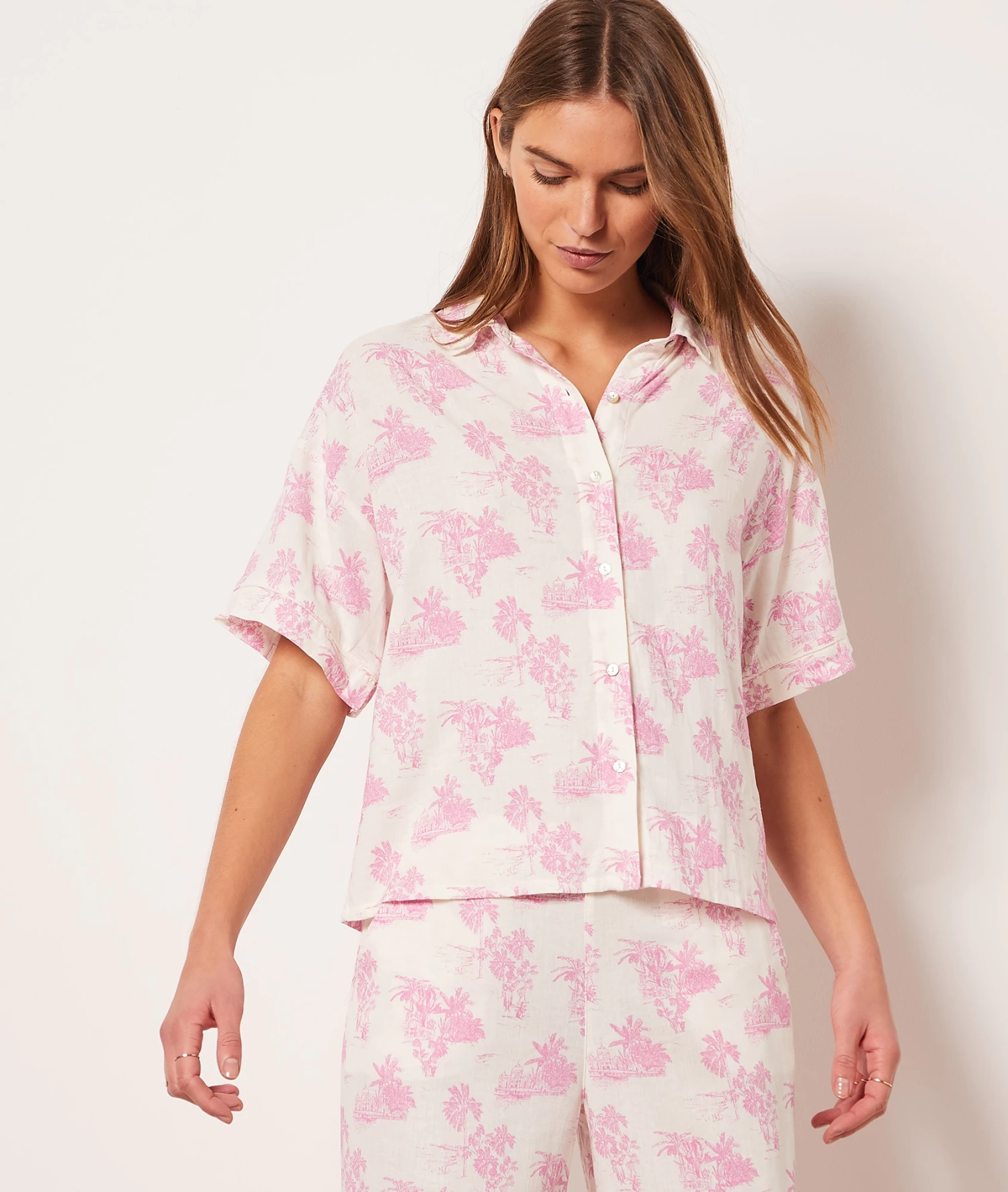 Laissez-vous séduire par cette coupe courte et cet imprimé toile de Jouy. Munie de manches longues et composé de lin mélangé, cette chemise de nuit allie confort et style.