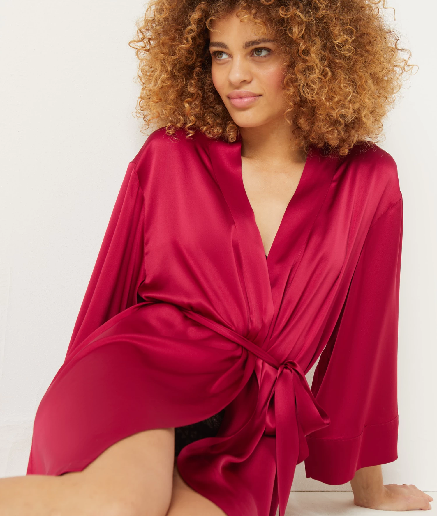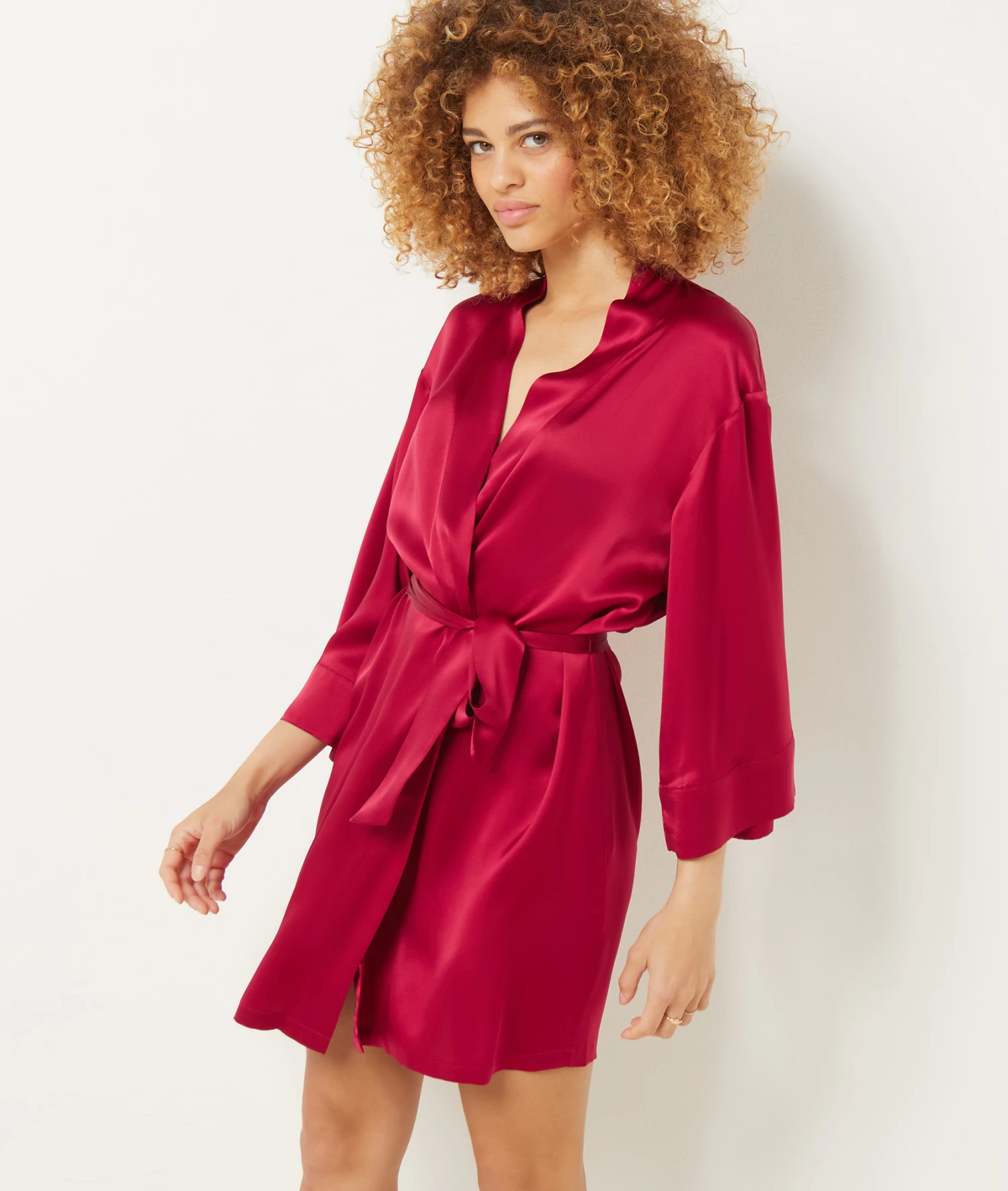 Doux et élégant, ce déshabillé en soie se glisse à la perfection par-dessus un total look assorti et promet des nuits légères.