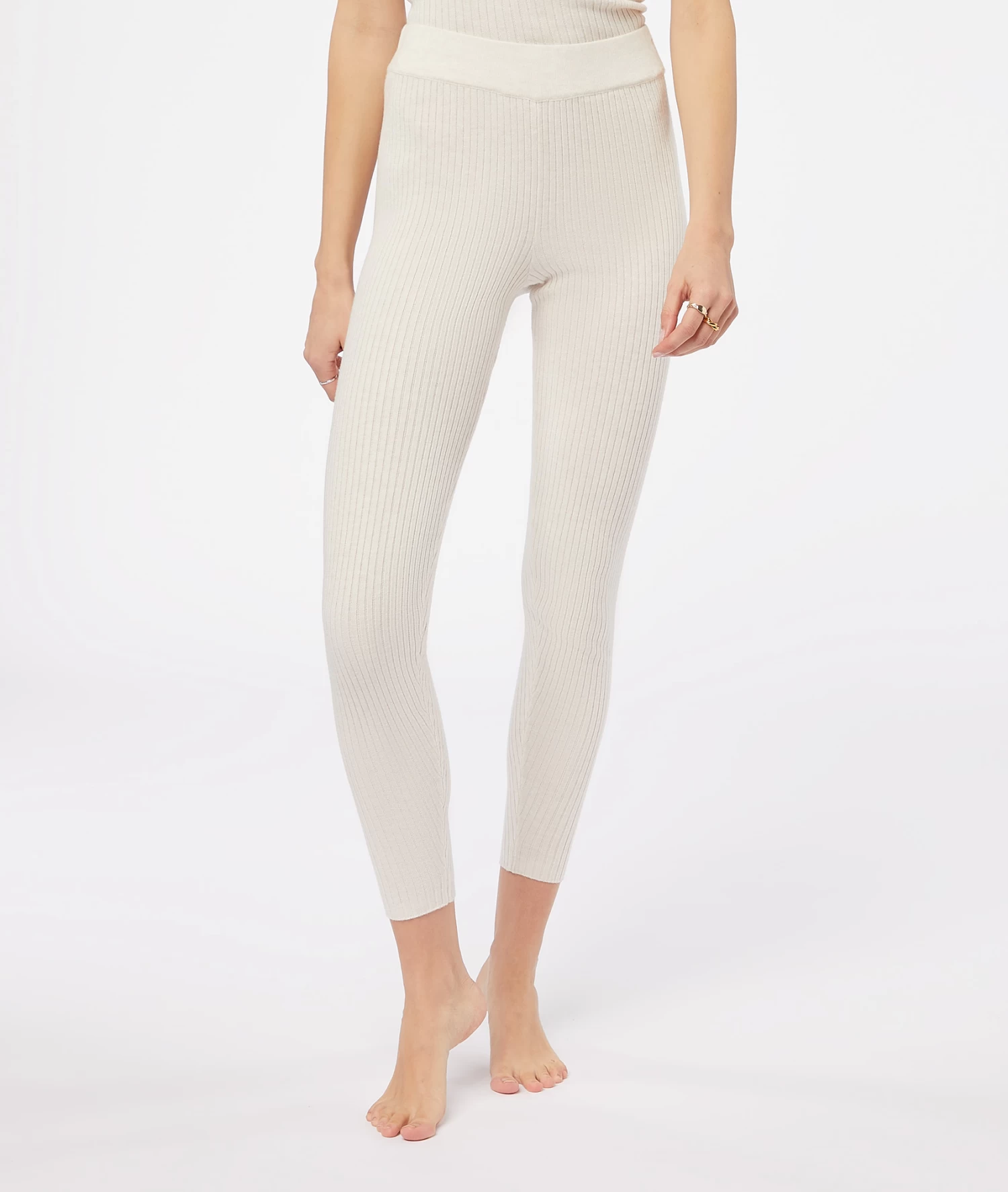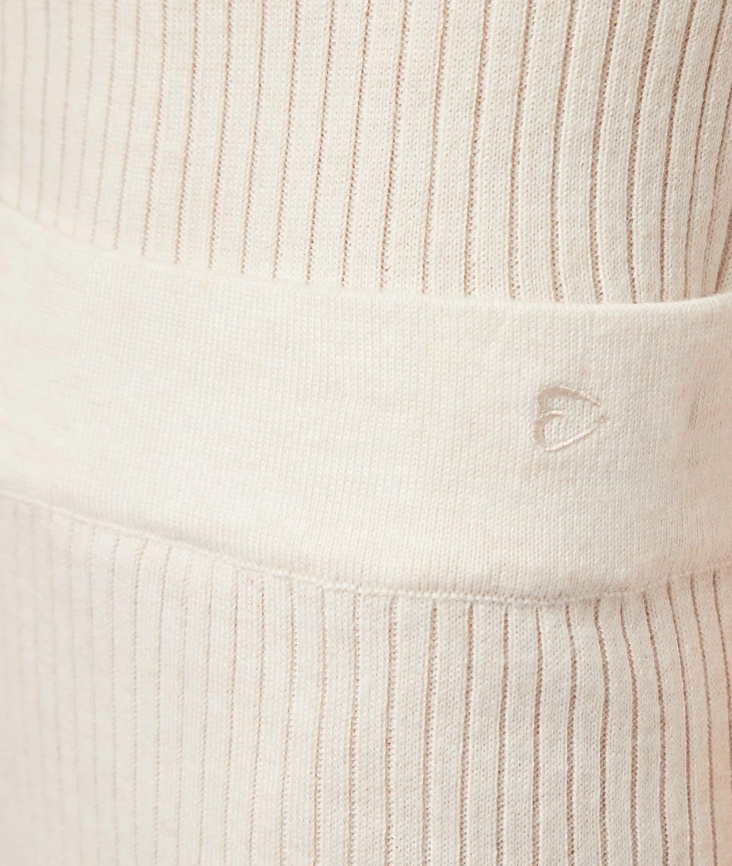 Délicatement côtelé, ce legging en maille douce accompagne tous vos moments cocooning. Avec le caraco et le gilet coordonné, misez sur un look 100% cosy.