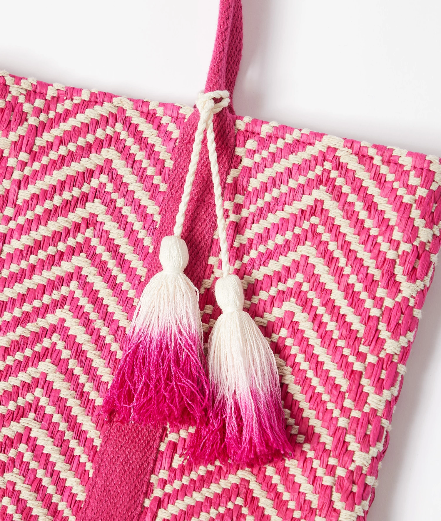 Optez pour ce cabas à motif graphique et glissez-y tous vos essentiels de plage. L’idéal pour accessoiriser votre outfit beachwear.