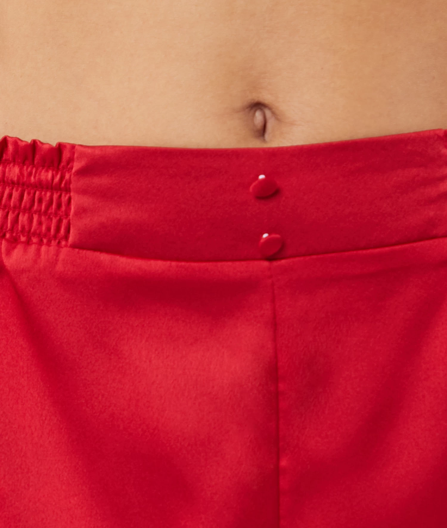 Délicatement bordé de dentelle brodée, ce short satiné et smocké à la taille apporte confort et délicatesse à vos nuits.