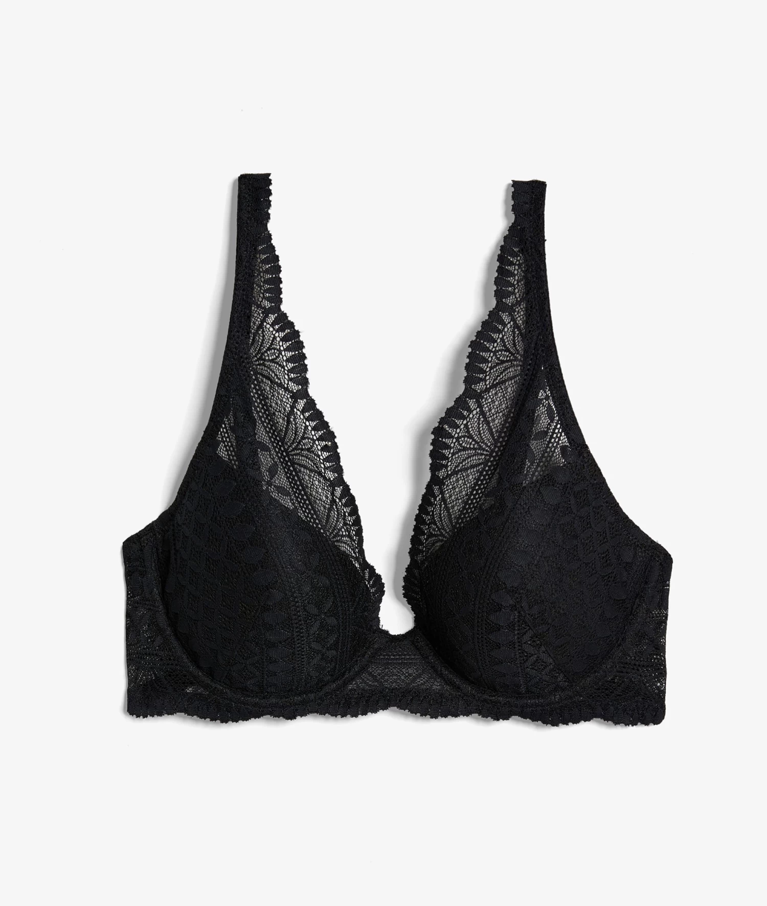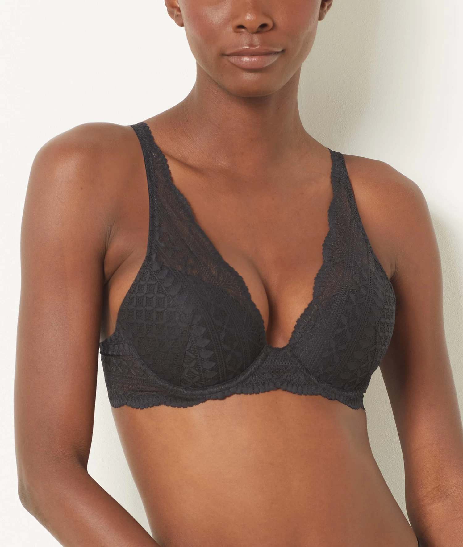 Le décolleté est naturellement sublimé dans ce soutien-gorge foulard muni de coques fines et d’armatures.