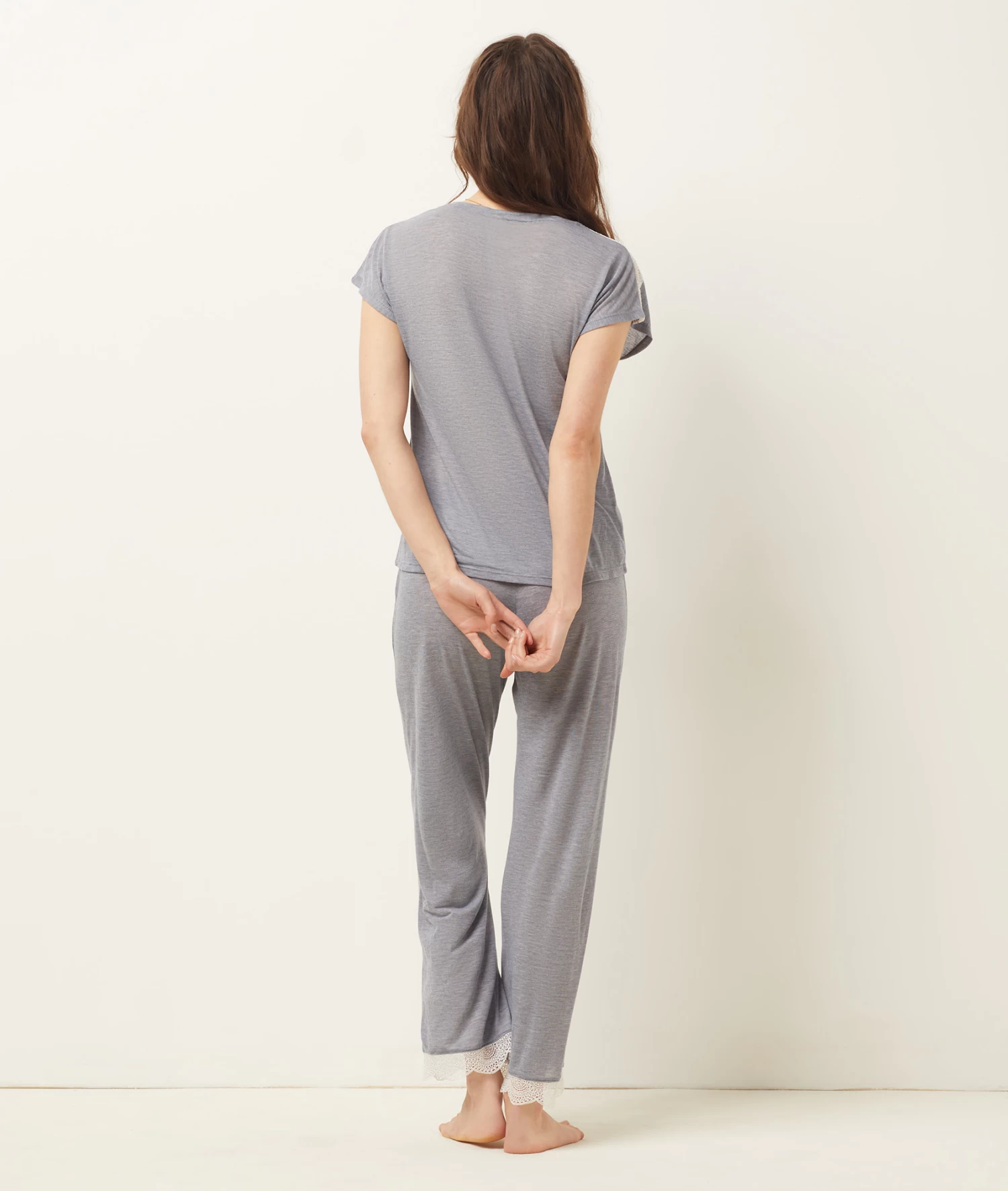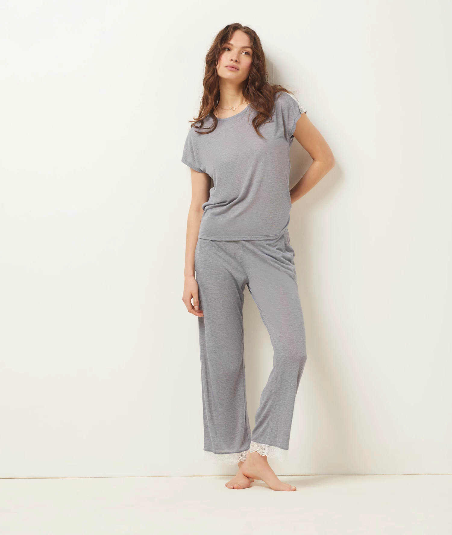 Un top de pyjama léger et ultra doux qui s’habille de bandes de dentelle aux épaules.