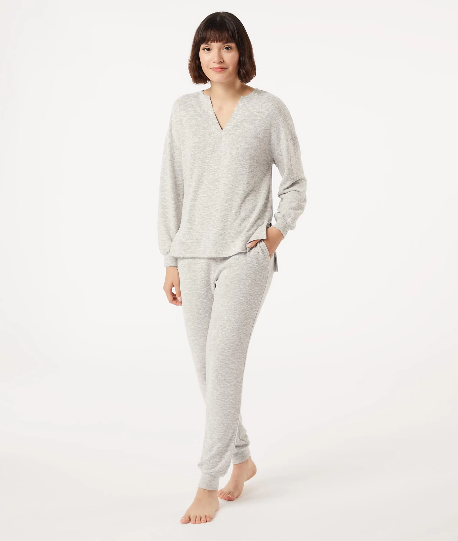 Ce sweat en jersey brossé confère une douceur incroyable et un confort parfait. Adoptez le avec son pantalon coordonné pour des nuits légères et encore plus chaudes.