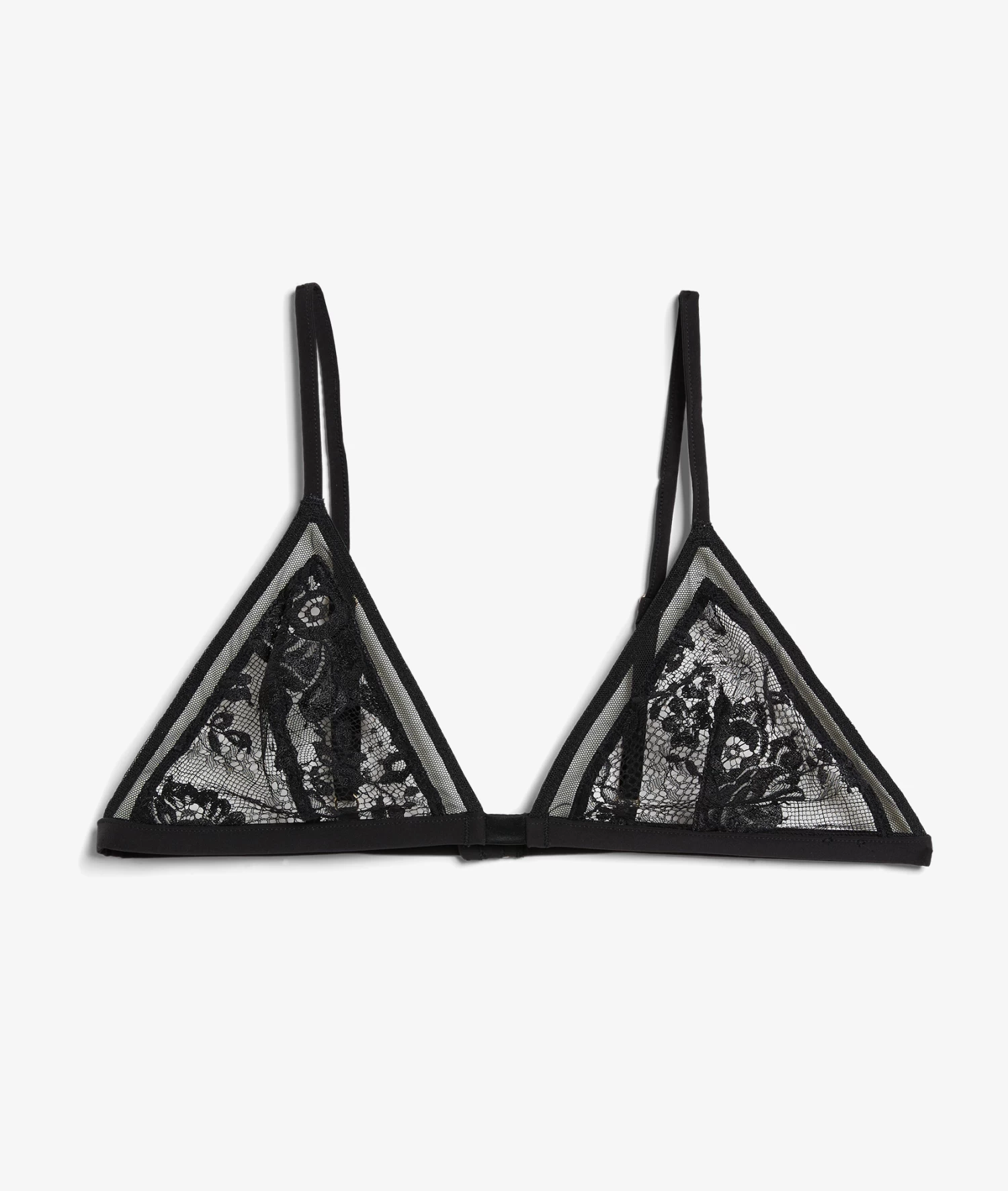 Une dentelle française signée Noyon infiniment précieuse et un tulle délicatement transparent se rencontrent sur ce soutien-gorge triangle ultra léger. Avec sa construction sans coques ni armatures, il offre une grande liberté de mouvement, et exacerbe la sensualité.
